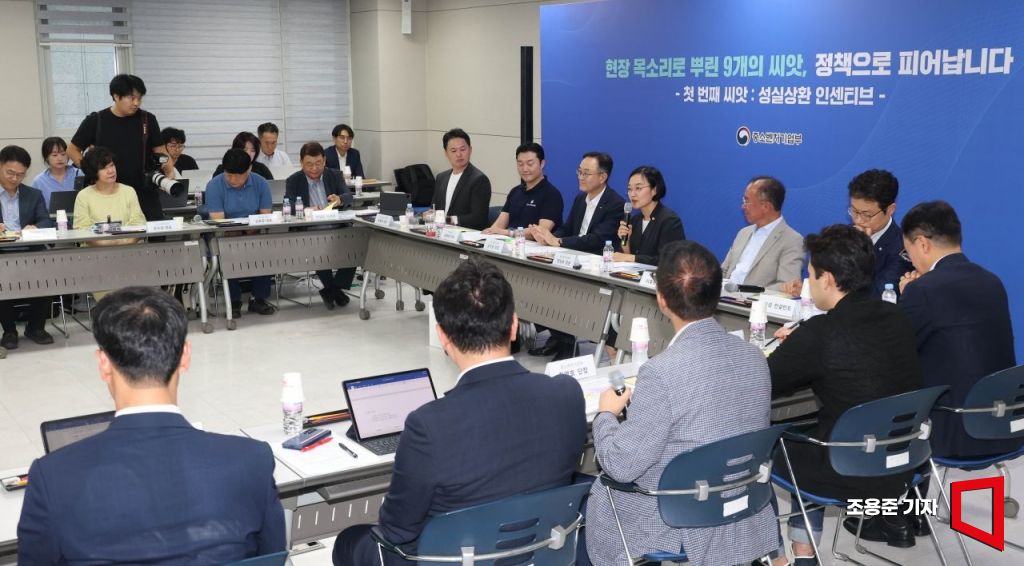 한성숙 중소벤처기업부 장관이 30일 서울 종로 소진공 서울중부센터에서 열린 ‘제1회 소상공인 회복 및 안전망 강화를 위한 릴레이 간담회’에서 발언을 하고 있다. 이날 간담회에는 소상공인을 비롯해 소상공인연합회장, 전국상인연합회장, 외식업중앙회장, 수퍼마켓협동조합연합회장 등이 참석했다.