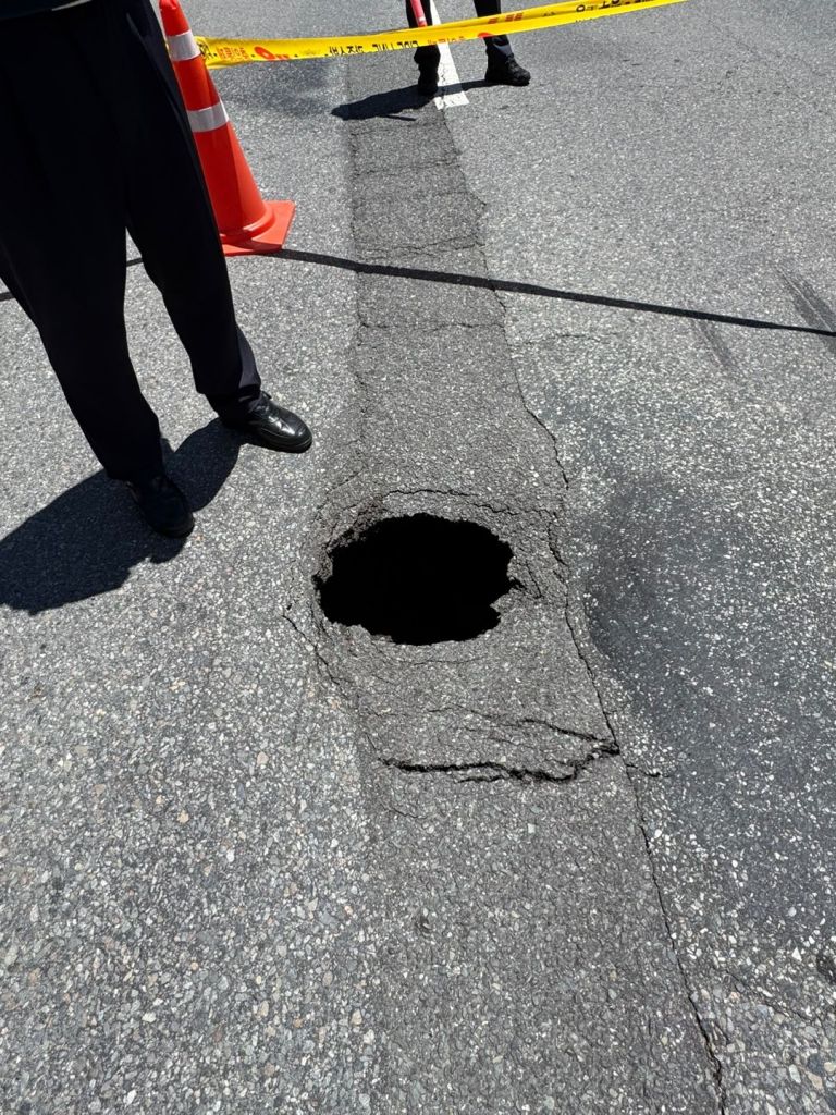 30일 낮 12시 30분께 광주 동구 금남로 한 도로에서 표면 지름 50㎝(속 넓이 1m), 깊이 50㎝ 크기의 소형 싱크홀(땅 꺼짐)이 발생했다.