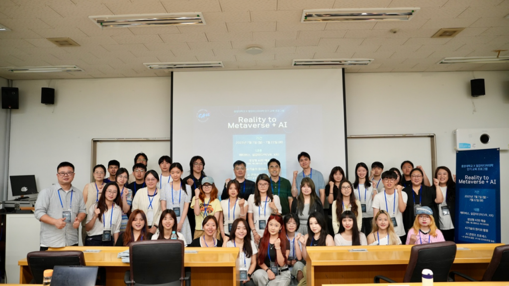 중앙대는 프로그램 통해 전통적 영화제작 교육에 AI와 메타버스 기술을 접목한 혁신적 교육과정을 선보였다. 프로그램은 최신 기술 트렌드를 반영한 예술·공학 융합 교육으로 총 22개 강좌로 구성됐다. 메타버스융합대학원 참여교수들은 메타버스, 실감미디어(VR, XR), AI기술의 원리 등 첨단 공학 기술을 다룬 이론 강의와 함께 생성형 AI를 활용한 예술(영화·애니메이션·미디어아트), AI 콘텐츠 제작 실습 등을 유기적으로 연결해 교육을 진행했다.
