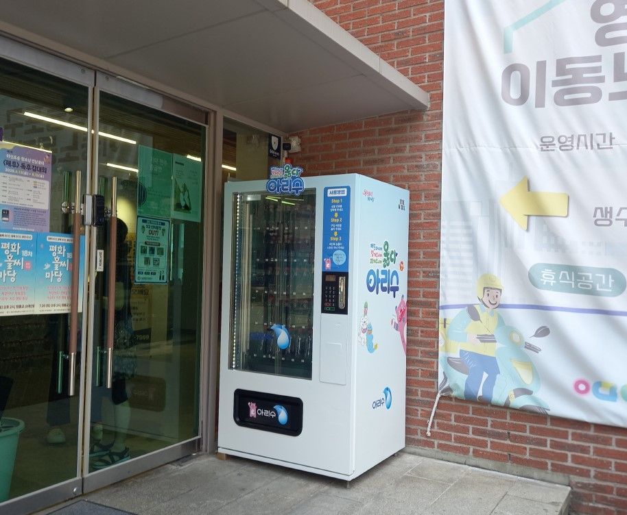 영등포구 이동노동자 쉼터 앞 아리수 자판기. 영등포구 제공.