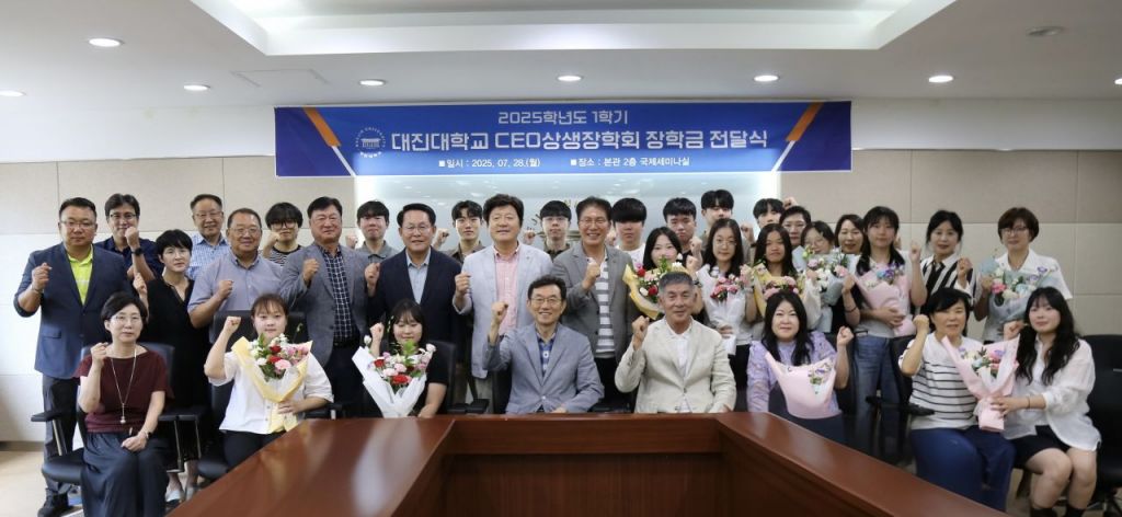 대진대학교(총장 장석환)는 지난 28일 본관 2층 국제세미나실에서 2025학년도 1학기 대진대학교CEO상생장학회(회장 강용범) 장학금 전달식 및 장학증서 수여식을 개최했다고 30일 밝혔다.