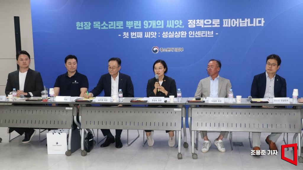 중기부는 30일 서울 종로구 중부 소상공인지원센터에서 열린 첫 번째 간담회는 금융 안전망을 주제로 열렸다. 한 장관은 "간담회를 통해 들은 생생한 현장의 목소리를 구체화해 정책에 반영하고 개선이 가능한 사안은 하루라도 빨리 해결하고자 한다"며 "정책이 보고서라는 틀을 넘어 현실에서 살아 숨 쉬는 실질적 해결책이 되도록 만들겠다"고 말했다.