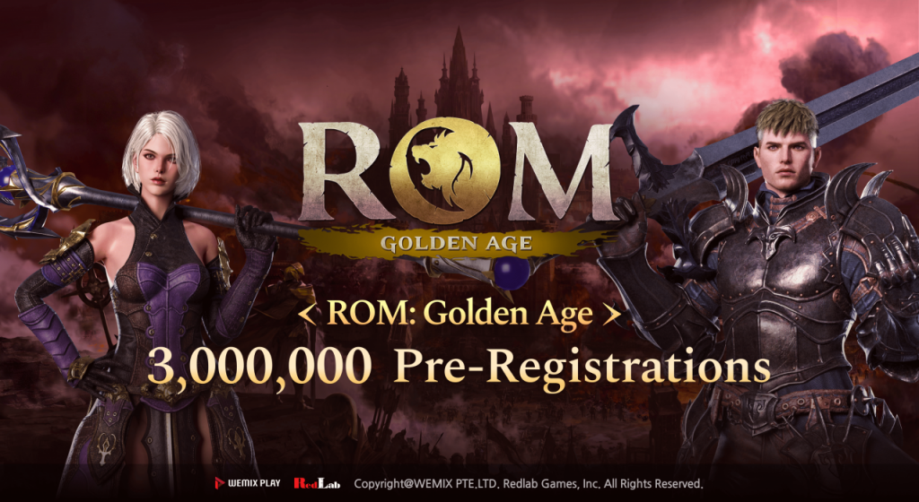위메이드는 블록체인 게임 플랫폼 '위믹스 플레이'에 온보딩한 웹3 다중접속역할수행게임(MMORPG) '롬: 골든 에이지'가 사전예약 수 300만을 돌파했다고 30일 밝혔다.