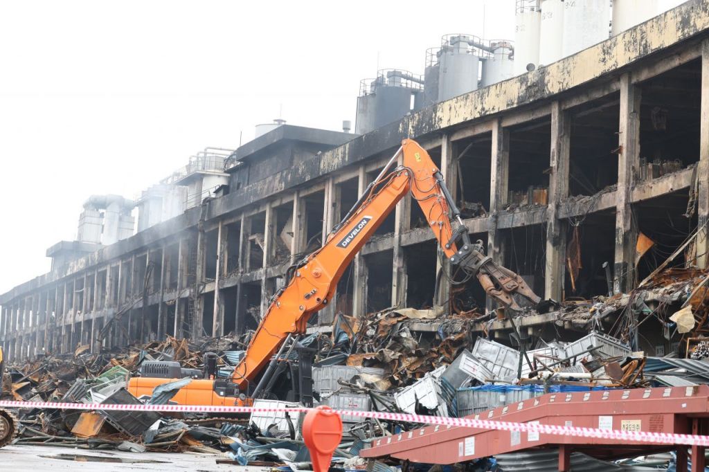 지난 5월20일 오전 광주 광산구 금호타이어 광주공장에서 불이 난 건물을 철거하기 위해 잔해 정리 작업이 이뤄지고 있다. 연합뉴스