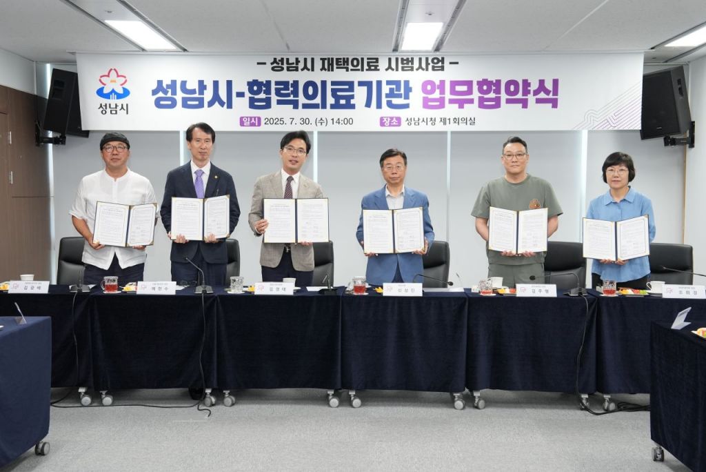 시는 이날 오후 2시 시청 4층 제1회의실에서 성남시의사회, 집으로의원, 연세가정의원, 서울가정의원, 새한베스트의원, 연세생명나무내과의원과 '재택의료사업 추진을 위한 업무협약'을 했다.