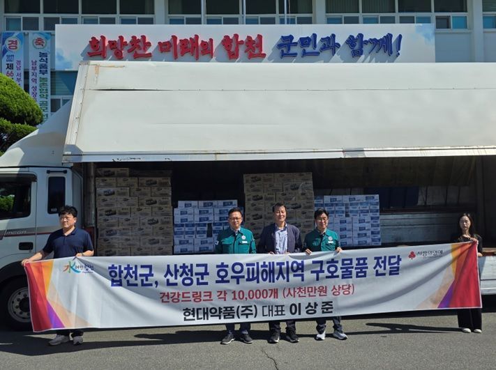 현대약품이 최근 집중호우로 큰 피해를 본 경남 합천군과 산청군 지역 주민들을 위해 구호 물품을 긴급 지원했다고 31일 밝혔다