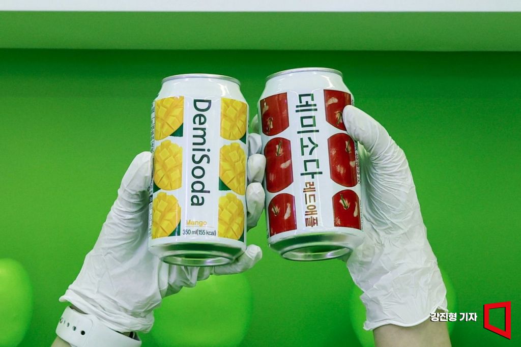 14일 서울 성동구 데미소다 브랜드스토어에서 열린 오픈 기념 미디어데이에서 직원들이 데미소다를 선보이고 있다. 데미소다 브랜드스토어에서는 2008년 이후 16년만에 새롭게 선보이는 데미소다 디자인 공개와 함께 20대를 겨냥한 시음 행사 및 여러 참여형 이벤트를 만나 볼 수 있다. 스토어는 오는 15일부터 28일까지 성수동에서 운영한다. 사진=강진형 기자aymsdream@