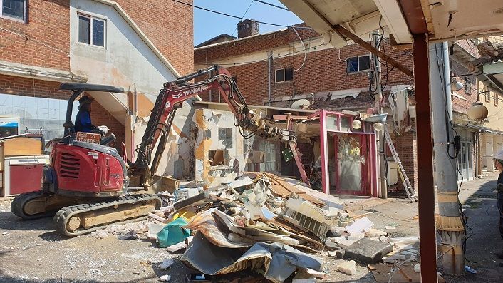파주시가 지난 23일과 24일 이틀간 성매매집결지 내 불법건축물 4개동에 대해 제11차 행정대집행을 단행하고 있다. 파주시 제공