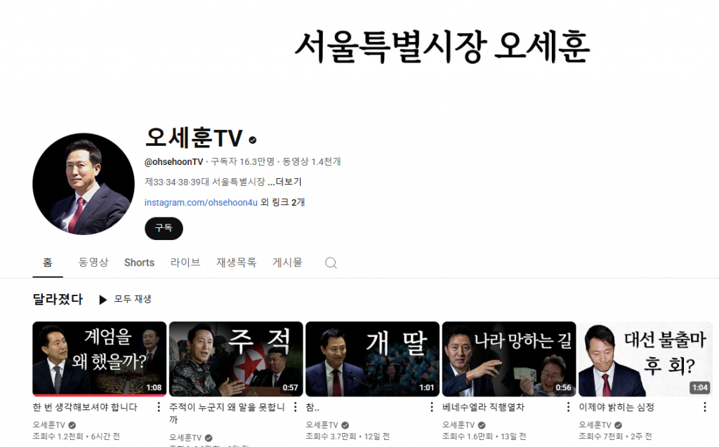 오세훈TV는 이날 '한 번 생각해 보셔야 합니다'라는 제목의 영상을 게재했다. 계엄에 대한 자신의 의견을 나눈 SBS뉴스 인터뷰를 발췌했다.