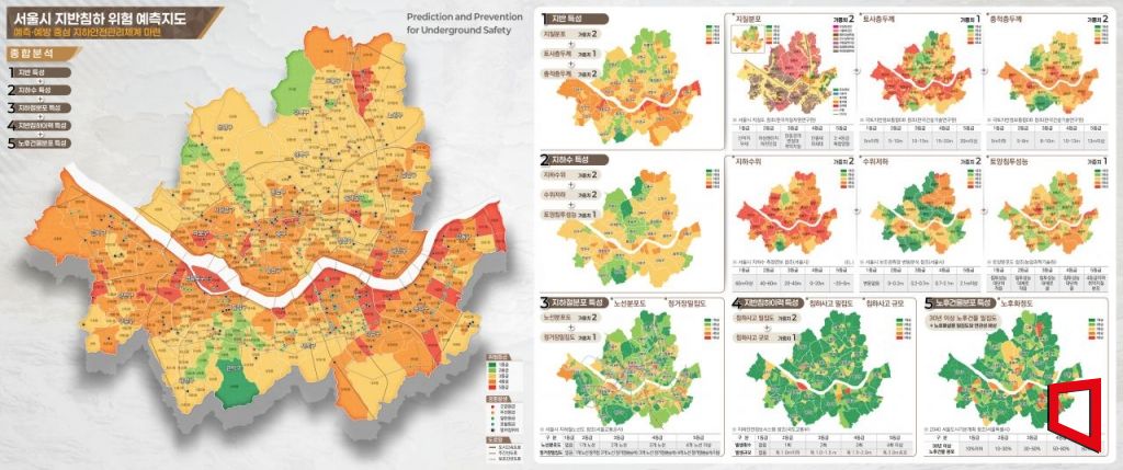 한국지하안전협회가 15명의 전문가들과 공개 자료 등을 활용해 만든 서울시 지반침하 위험 예측지도. 한국지하안전협회 제공