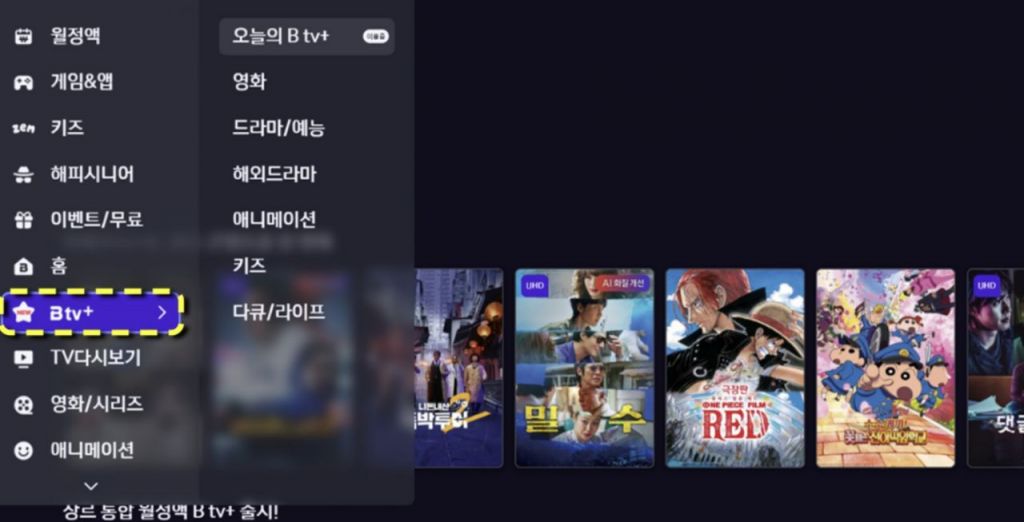 지난해 7월 출시한 B tv+는 영화·드라마, 애니메이션, 키즈, 다큐멘터리 등 약 20만편의 전 장르 콘텐츠를 무제한으로 제공하며, 가족 구성원 모두가 함께 즐길 수 있는 월정액 상품으로 자리 잡고 있다. B tv+는 장르별로 나뉘어 있던 기존 17종 월정액 상품을 통합한 것이다.