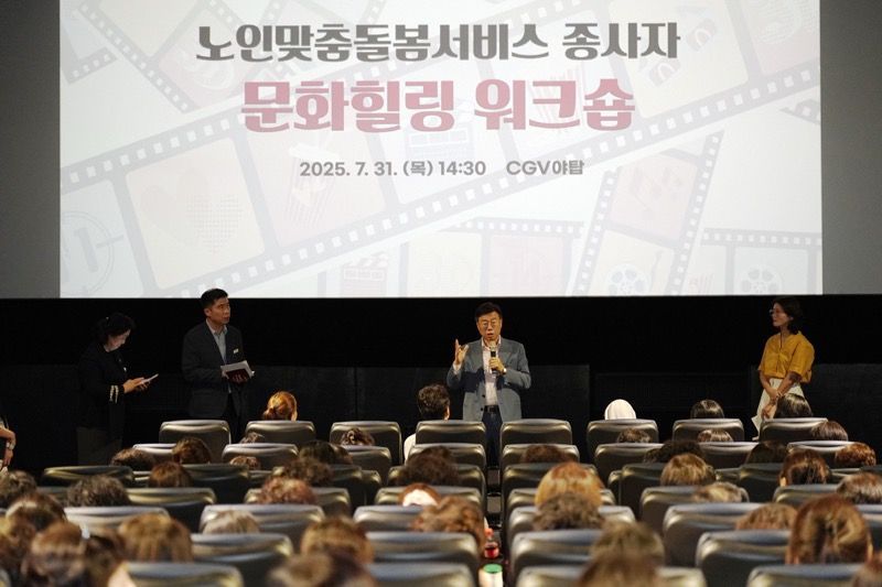 신상진 성남시장이 31일 오후 야탑CGV에서 열린 '노인맞춤돌봄서비스 종사자 문화힐링 워크숍'에 참석해 현장 종사자들을 격려했다.