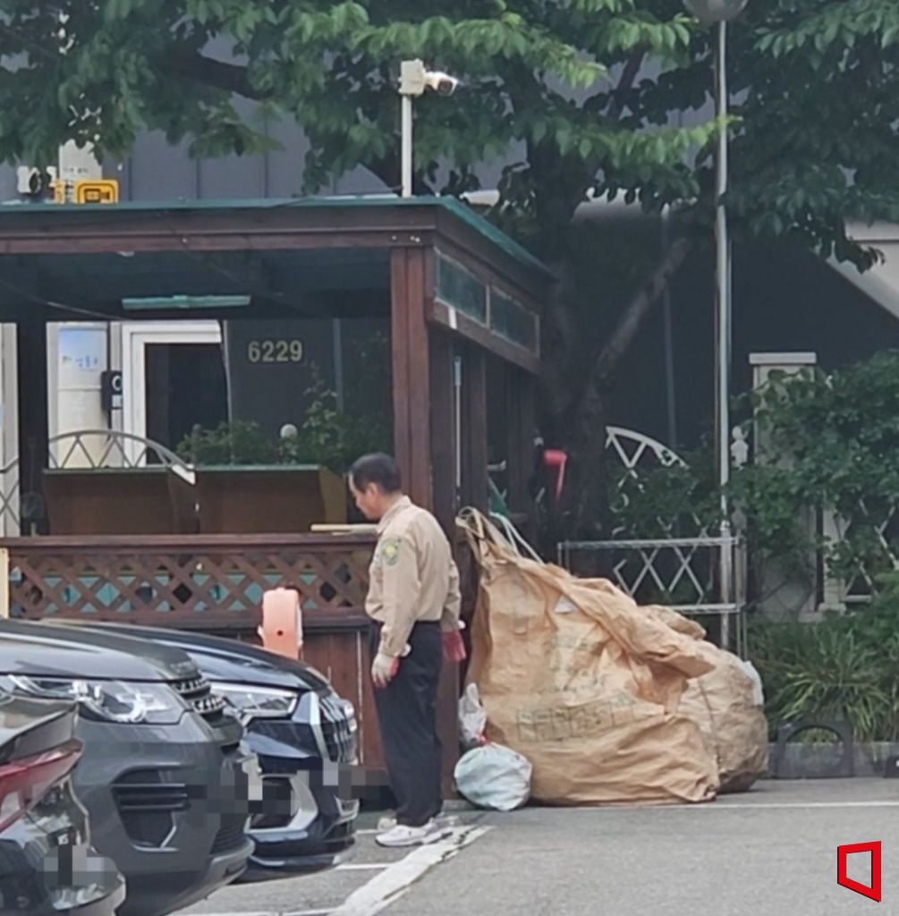 이날 이씨는 분리수거를 마치고도 계속해서 주변을 의식하는 모습이었다. 기자가 말을 걸면 경비실 뒤쪽 아무도 안 보이는 곳에서만 대답할 정도였다. 이씨는 "단지가 작다 보니 경비실도, 정문도 하나뿐이라서 경비원이 주민들의 눈에 잘 띈다"며 "지나가는 입주민뿐 아니라 위에서 내려다보고 항의하는 사람도 있다"고 말했다. 이어 "기본 업무도 중요하지만 결국 하나부터 열까지 눈치싸움"이라며 "한 달에 한 번 입주자대표 회의에서 안 좋은 얘기가 나오지 않도록 해야 한다"고 덧붙였다.