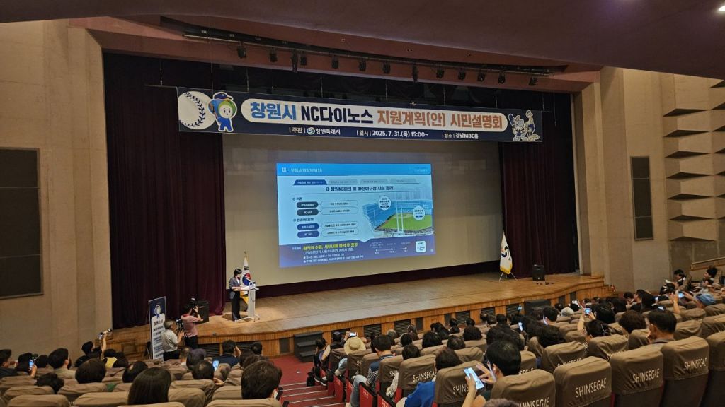 창원시는 31일 경남MBC홀에서 'NC다이노스 지원계획(안)' 시민설명회를 열어 NC구단이 시에 전달한 21개 요청사항에 대한 지원계획안을 밝히고 시민들의 의견을 들었다.