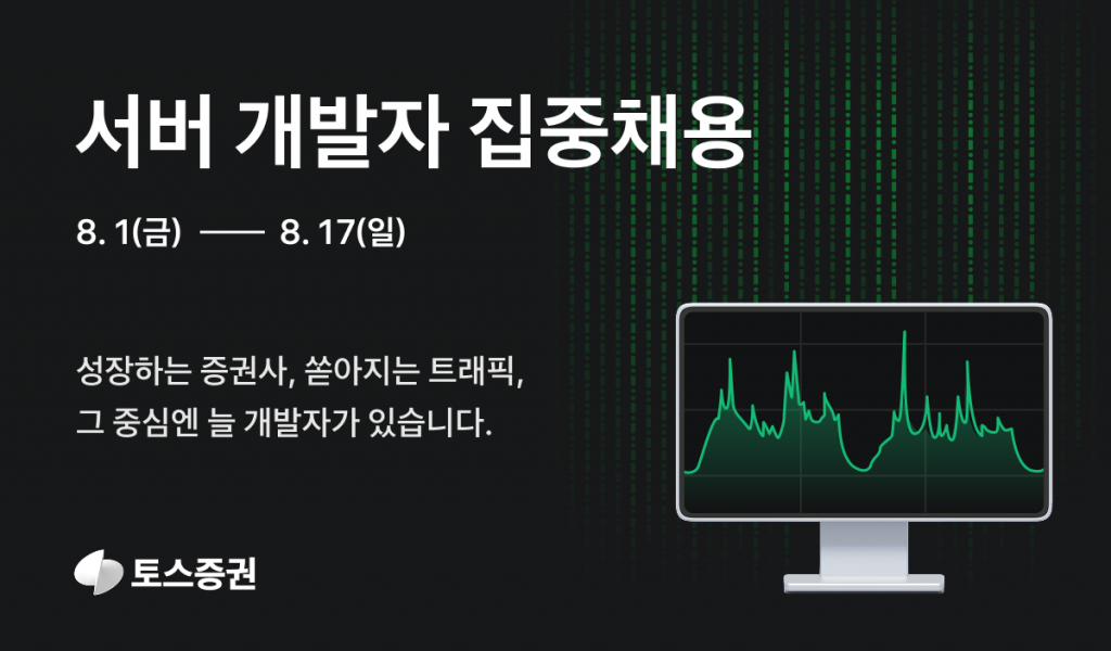 토스증권이 오늘부터 오는 17일까지 서버 개발자 집중 채용에 나선다고 1일 밝혔다. 이번 채용은 두 자릿수 규모로 진행되며, 서버 개발 경력 만 3년 이상의 개발자를 대상으로 한다.