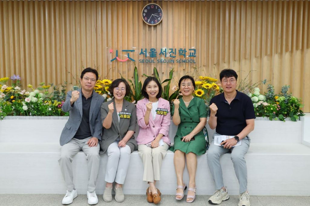 교육청 관계자 및 학교 관계자와 기념 촬영 모습. 가운데 최호정 서울시의회 의장. 서울시의회 제공.