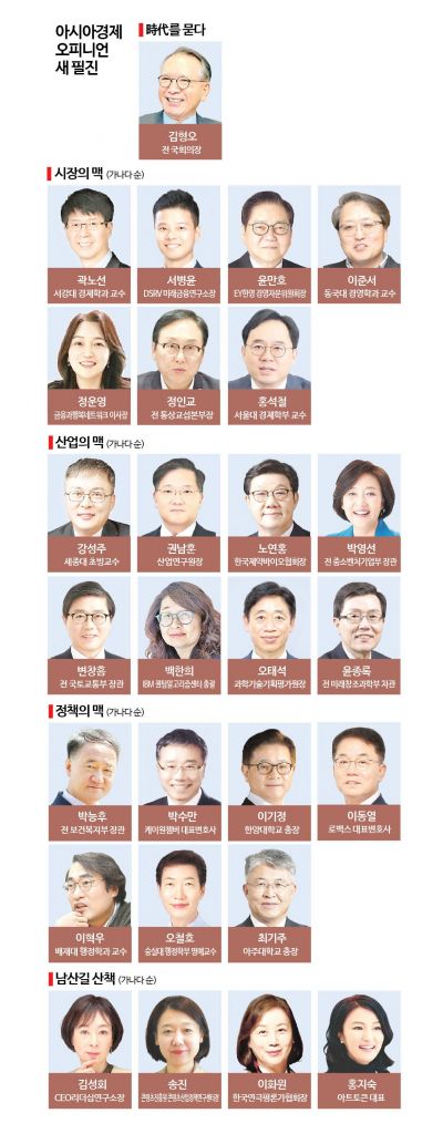 경제·산업·정책·문화·정치 전 분야를 아우르는 27인의 전문가들이 아시아경제 오피니언면에서 독자 여러분을 만납니다. 급변하는 경제 환경 속에서 단순한 정보 전달을 넘어, 독자 여러분이 더 나은 선택과 결정을 할 수 있도록 현장에서 쌓은 경험을 바탕으로 한 실질적 조언을 전해드리는 것이 이번 개편의 핵심입니다.