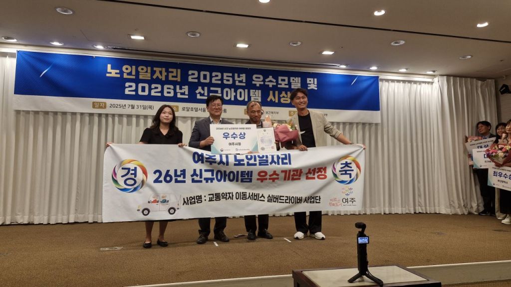 경기 여주시는 지난 31일 보건복지부에서 주최한 '2026년 신규 노인일자리 개발을 위한 아이템 공모전'에서 '교통약자 이동서비스 실버드라이버 사업단'의 주제로 공모전에 선정되어 보건복지부 장관 기관표창을 수상했다고 1일 밝혔다.