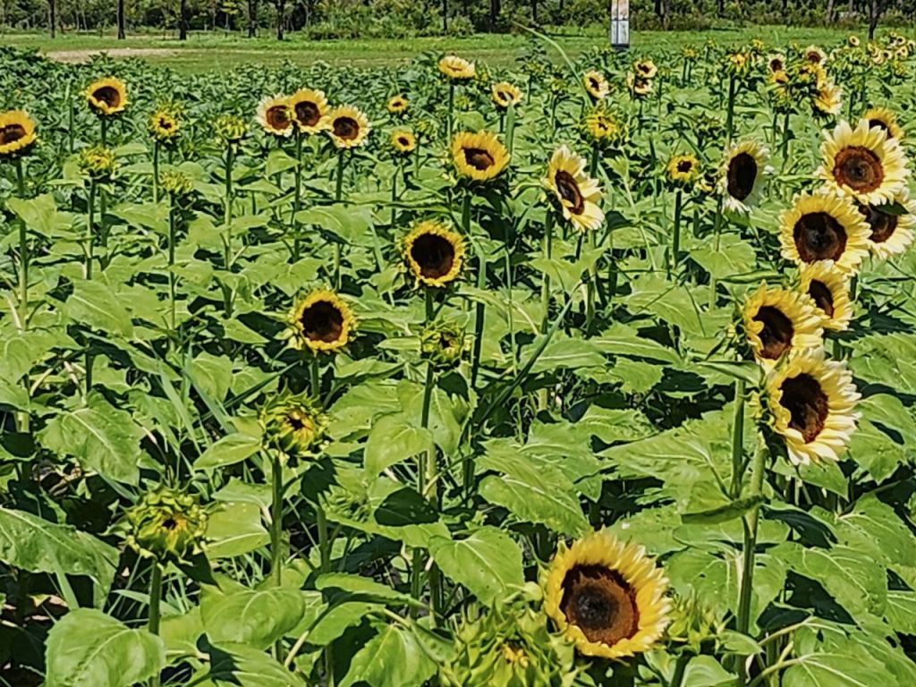 6월에 10종류의 해바라기를 함께 심었고, 7월 말부터 하나씩 개화를 하고 있으며 개화기간은 20일 정도로 품종마다 개화 시기가 빠르고 늦은 차이나 8월 말까지는 계속 꽃을 볼 수 있을 것으로 예상된다.