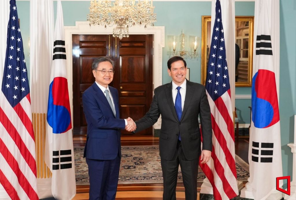 조현 외교부 장관이 31일(현지시간) 미국 워싱턴DC 국무부에서 마코 루비오 국무부 장관과 취임 후 첫 한미 외교장관 회담에 앞서 악수하고 있다. [외교부 제공]