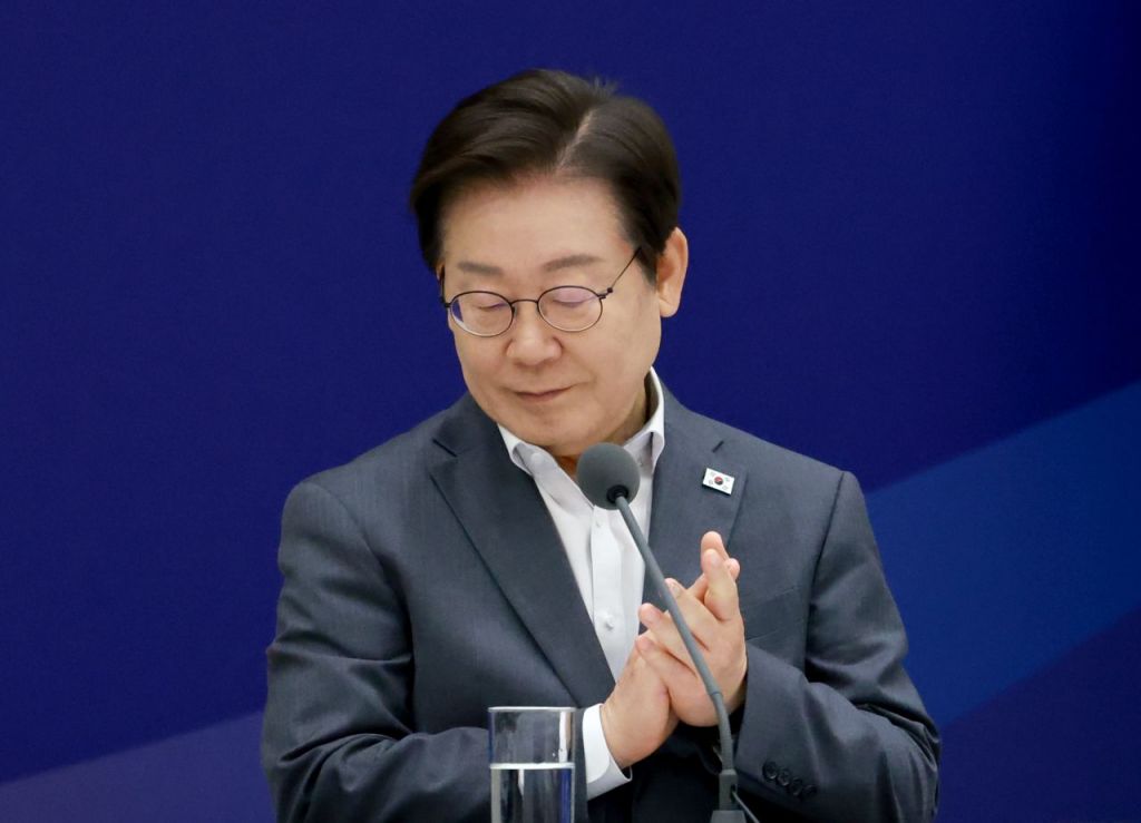 이재명 대통령이 1일 서울 용산 대통령실 청사에서 열린 전국 시도지사 간담회에서 대한민국시도지사협의회장인 유정복 인천광역시장의 발언 뒤 박수치고 있다. 연합뉴스