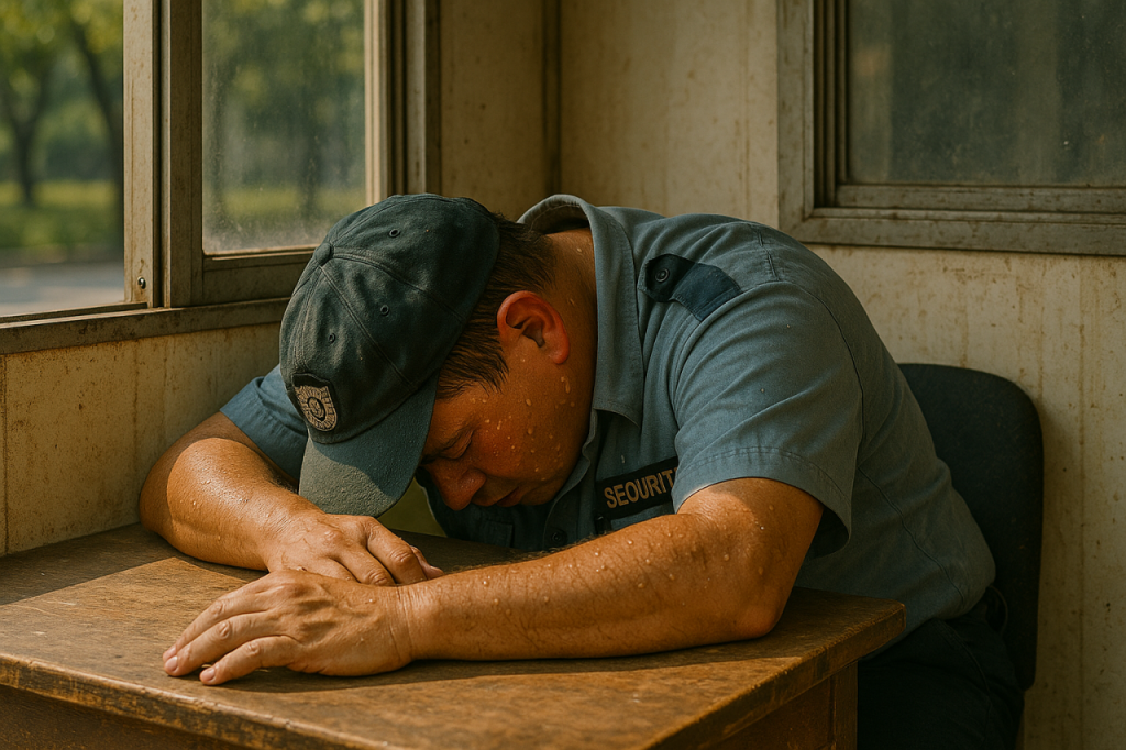 중국의 한 아파트 단지에서 근무하던 경비원이 무더위 속 에어컨이 없는 초소에 일찍 출근했다가 쓰러져 숨졌지만, 고용주가 업무 관련 사망이 아니라며 산업재해 보상을 거부해 논란이다.