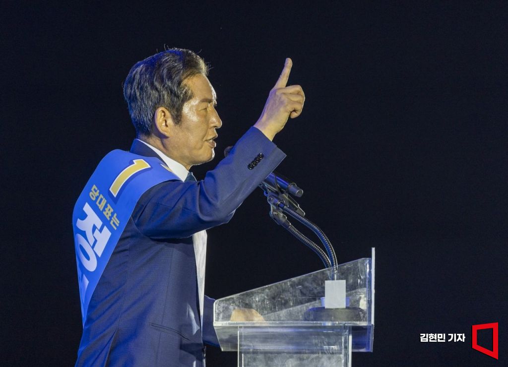 정청래 더불어민주당 당대표 후보가 2일 경기 고양시 킨텍스에서 열린 전국당원대회에서 정견발표를 하고 있다.