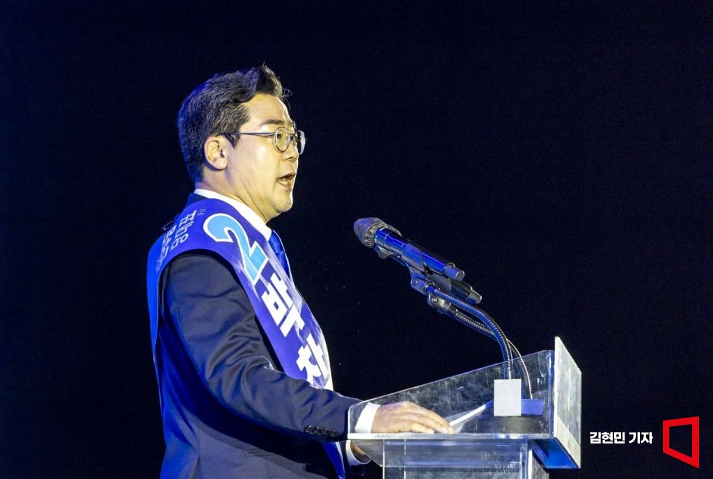 박찬대 더불어민주당 당대표 후보가 2일 경기 고양시 킨텍스에서 열린 전국당원대회에서 정견발표를 하고 있다.