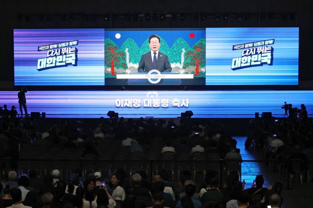 앞서 이 대통령은 이날 경기 고양 킨텍스에서 열린 더불어민주당 신임 당 대표 선출을 위한 전당대회에 보낸 영상 축사를 통해 ""국민과 역사가 부여한 사명을 완수하는 길에 민주당이 '원팀' 이 돼 앞장서 줄 것으로 믿는다"면서 "지난 대선에서 증명했던 것처럼 민주당은 하나일 때 가장 강하다"고 했다.