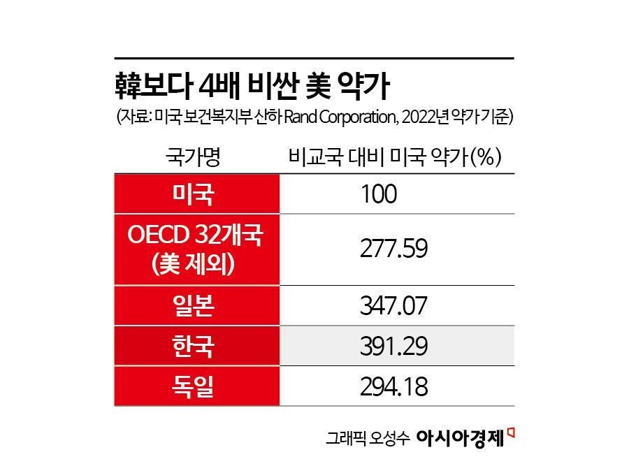 미국 내 의약품 가격이 OECD(경제협력개발기구) 국가 평균보다 2.8배, 한국 대비로는 4배 가까이 높다는 분석이 나왔다.