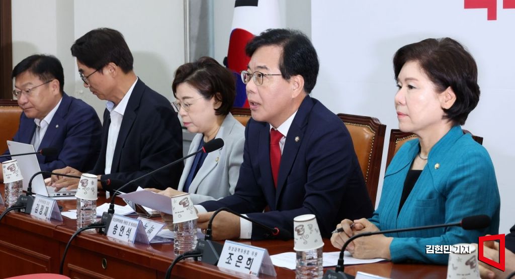 송언석 국민의힘 비상대책위원장 겸 원내대표가 4일 국회에서 열린 비상대책위원회의에서 발언하고 있다.
