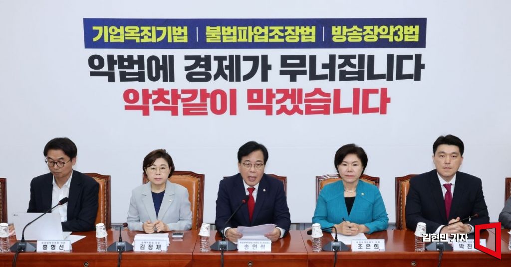 김정재 국민의힘 정책위의장은 "민주당이 5대 악법 가운데 어떤 법안을 먼저 처리할지 고민 중이라고 한다. 점심 메뉴 고민도 아니고 참으로 한심하다"고 비판했다. 김 의장은 "방송장악 3법, 노란불법봉투법, 더 센 상법 등 국민의 삶과 언론 자유, 미래 경제에 중대한 영향을 미칠 법안들을 자신들의 정치적 유불리에 따라 메뉴 고르듯 다룬다는 소식에 국민의 분노와 허탈감이 이루 말로 표현하기 어렵다"고 지적했다.