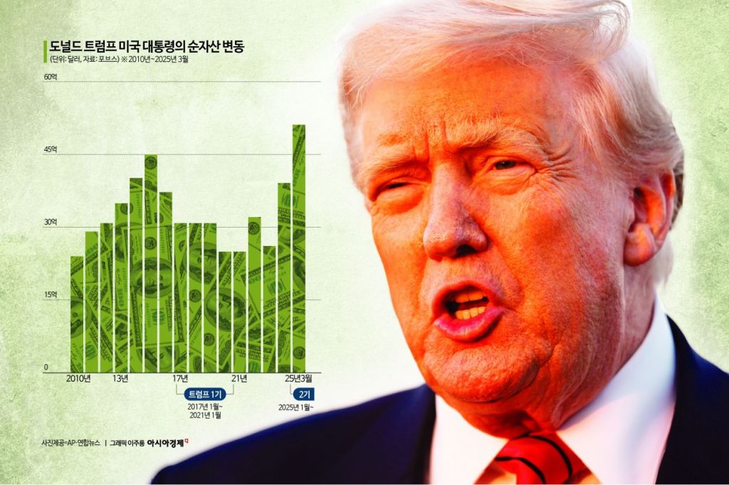 포브스에 따르면 트럼프 대통령의 자산은 지난 3월 기준 51억달러(약 7조553억원)다. 열렬한 지지층을 업고 2024년 대통령 선거를 통해 정치판에 복귀하면서 재산이 2년 전과 비교해 2배 가까이 급증했다.