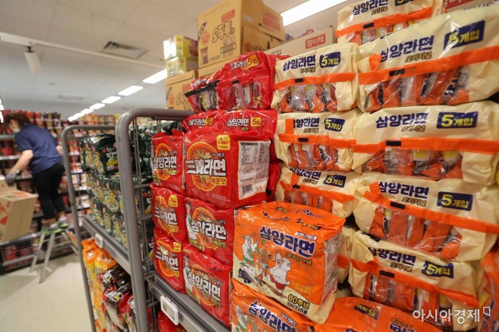 15일 서울 시내 한 대형마트에 라면이 진열돼 있다. 한국 드라마, 영화 등으로 인지도가 상승하면서 라면이 세계적인 인기를 끌고 있다. 업계에 따르면 농심은 신라면의 3분기 누적 해외 매출이 국내 매출을 넘어섰다. 삼양식품은 지난해 전체 매출에서 해외매출 비중이 57%에 달했다. /문호남 기자 munonam@