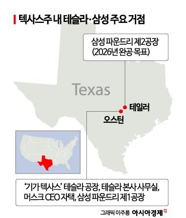 테슬라와 삼성의 주요 인프라가 텍사스에 집중돼 있다는 점에서 머스크 CEO가 양사 간 지리적 인접성을 활용한 협력 구상을 염두에 뒀을 가능성도 제기된다. 테슬라는 오스틴에 대형 생산기지인 '기가 텍사스'를 두고 있으며, 인근에는 머스크 CEO의 자택도 있다. 이 공장에선 모델Y와 사이버트럭 등 차세대 전기차가 생산되고 있고, 주변으로 관련 부품 업체들이 밀집한 상태다.