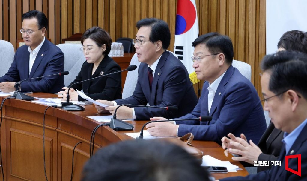 송언석 국민의힘 비상대책위원장 겸 원내대표가 5일 국회에서 열린 원내대책회의에서 발언하고 있다.