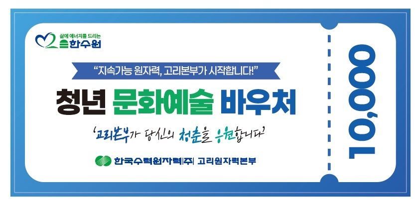 한국수력원자력 고리원자력본부(본부장 이상욱)는 지역 주민들의 삶의 질 향상과 문화 격차 해소를 위해 '고리본부 청년 문화예술 바우처' 사업을 시작한다.