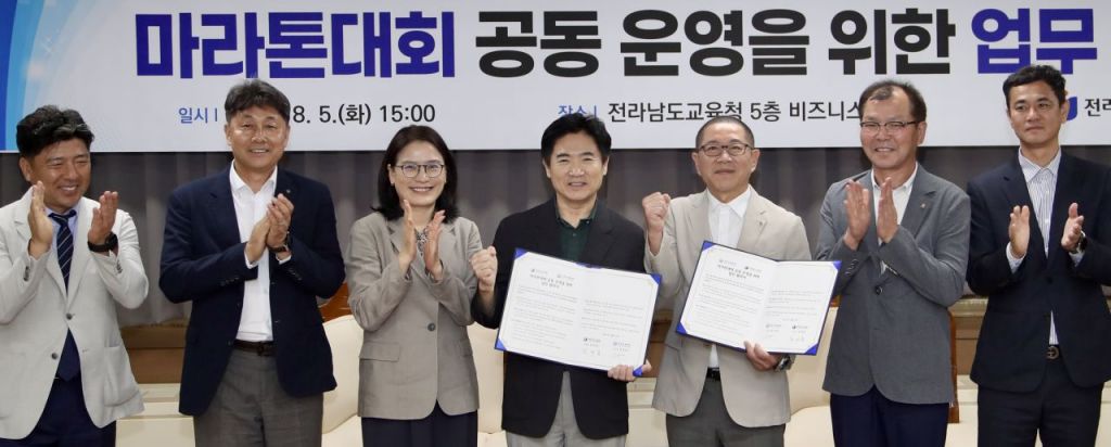 전남도교육청은 5일 목포시체육회와 함께 청사 비즈니스실에서 '교육감기·김대중 마라톤대회' 공동 운영을 위한 업무협약(MOU)을 체결했다.