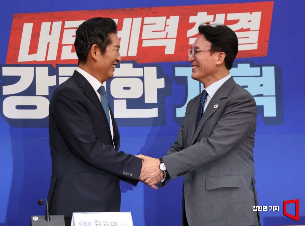 정청래 더불어민주당 대표는 5일 김민석 국무총리에게 "국민이 원하는 개혁을 속도감 있고 정밀하게 잘 호흡을 맞춰가겠다"며 당정대 화합을 강조했다.