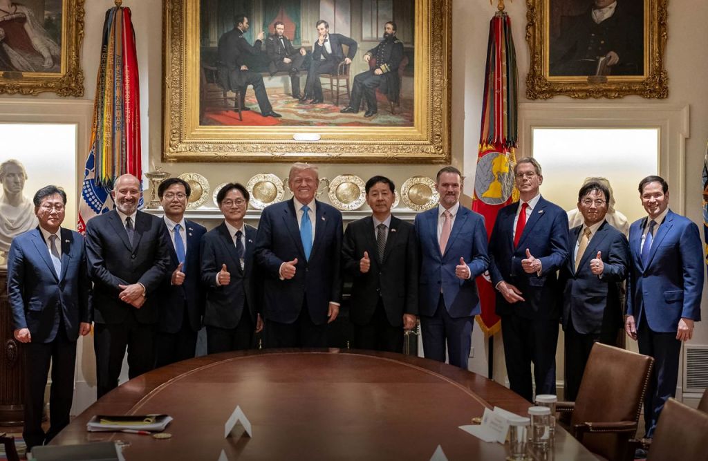트럼프는 모범답안도 직접 제시했다. 일본의 5500억달러 대미 투자 사례를 언급하며 노골적으로 "다른 나라도 돈을 내면 관세를 낮출 수 있다(buy it down)"고 했다. 이후 한국은 3500억달러 규모의 미국 투자와 관세 15% 적용을 맞바꿨다. 미국은 한국과 일본에 25%, EU에 30%의 고율 관세 부과를 일방 통보한 뒤, 대미 투자 확대 및 비관세 장벽 완화를 얻어내며 관세를 15%로 낮추는 동일한 전략을 취했다. 상대국 간의 견제 심리와 불안감까지 교묘히 활용한 전형적인 트럼프식 거래의 기술이었다. 한국, 일본 협상단과의 백악관 기념 촬영은 트럼프가 관세 드라마의 마지막 장면까지 주연으로서 연출했음을 보여주는 화룡점정이었다.