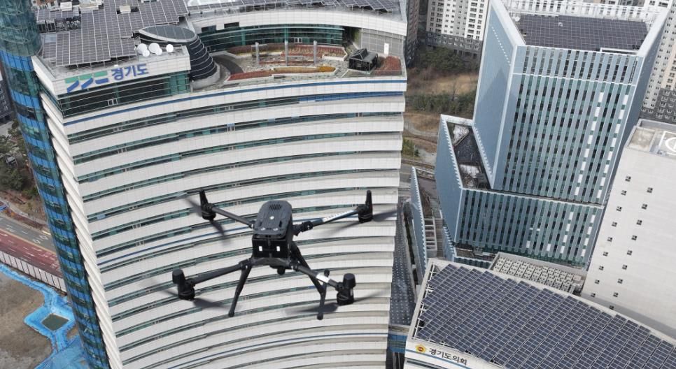 경기도가 3차원 드론을 활용해 경기도청 주변 지역 지적재조사를 실시하고 있다. 경기도 제공