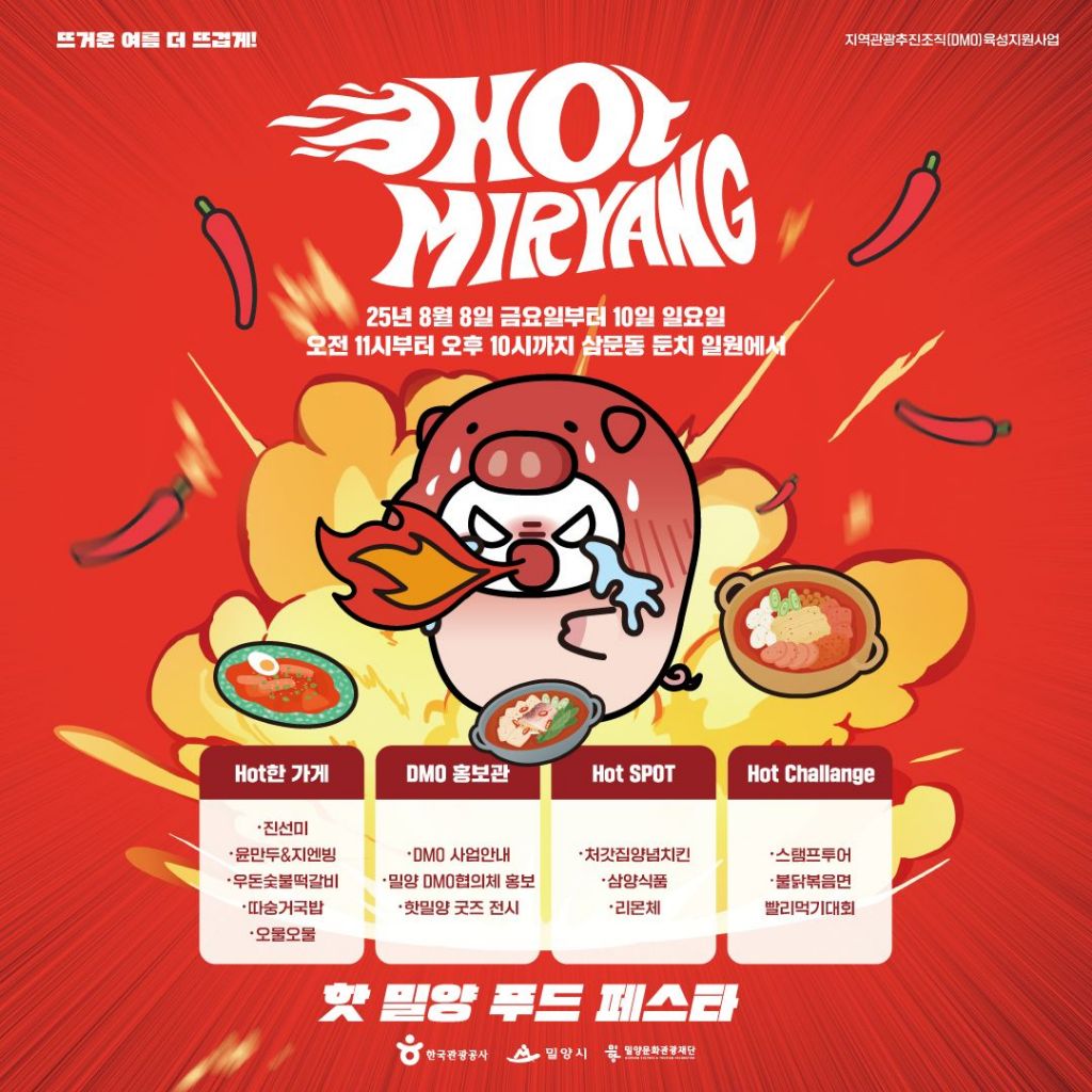 이번 행사는 삼양식품의 불닭볶음면, 무안면 맛나고추, 밀양돼지국밥, 햇살문화도시 등 밀양의 '맵고 뜨거운' 이미지를 활용해 'Hot Miryang'이라는 새로운 관광브랜드로 관광객을 맞이할 예정이다.