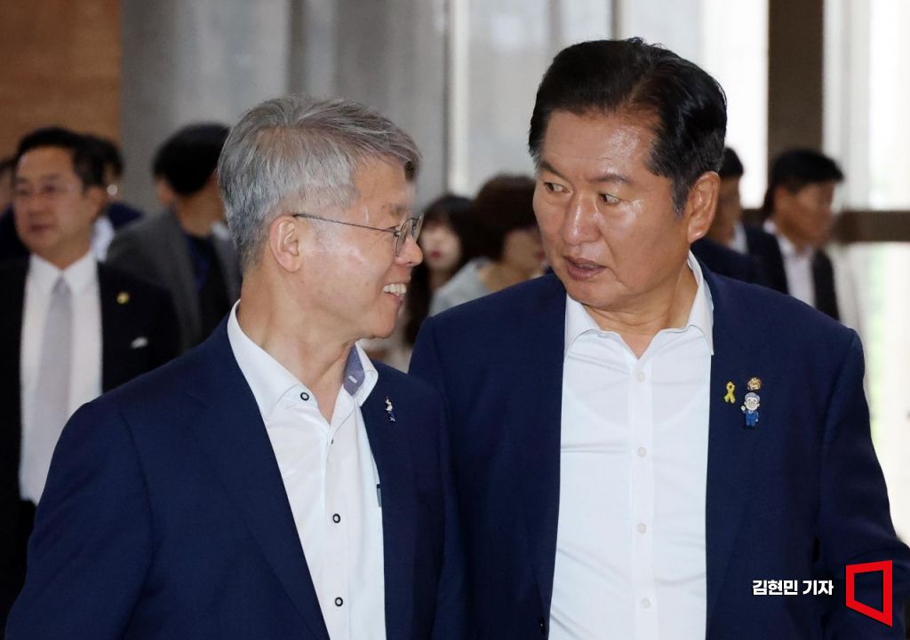 정청래 더불어민주당 당대표(오른쪽)과 민형배 의원