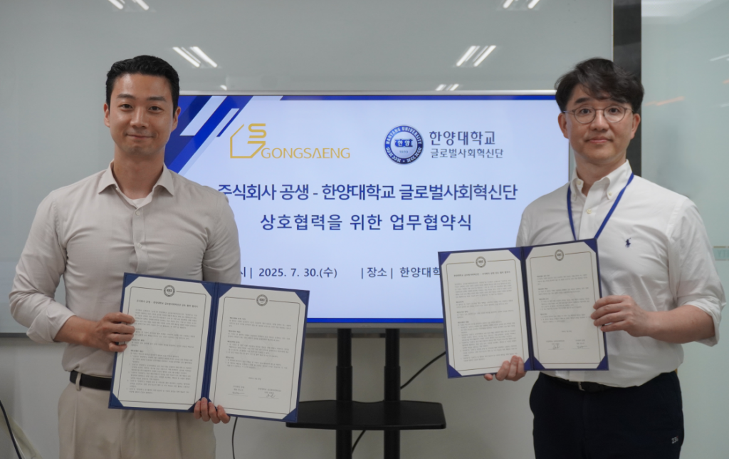 한양대학교 글로벌사회혁신단은 지난달 30일 교내 한양플라자 PBL강의실에서 주식회사 공생과 글로벌 리빙랩 생태계 조성을 위한 업무협약(MOU)을 체결했다고 밝혔다.