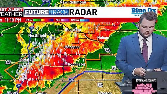 6일 USA투데이 등에 따르면 미네소타주 로체스터 지역방송(KTTC)의 기상 캐스터 닉 얀센이 지난달 28일 미네소타 남동부와 아이오와 북부 지역에 발생한 폭풍우 소식을 전하던 도중 휴대전화를 사용하는 모습이 그대로 방송됐다.