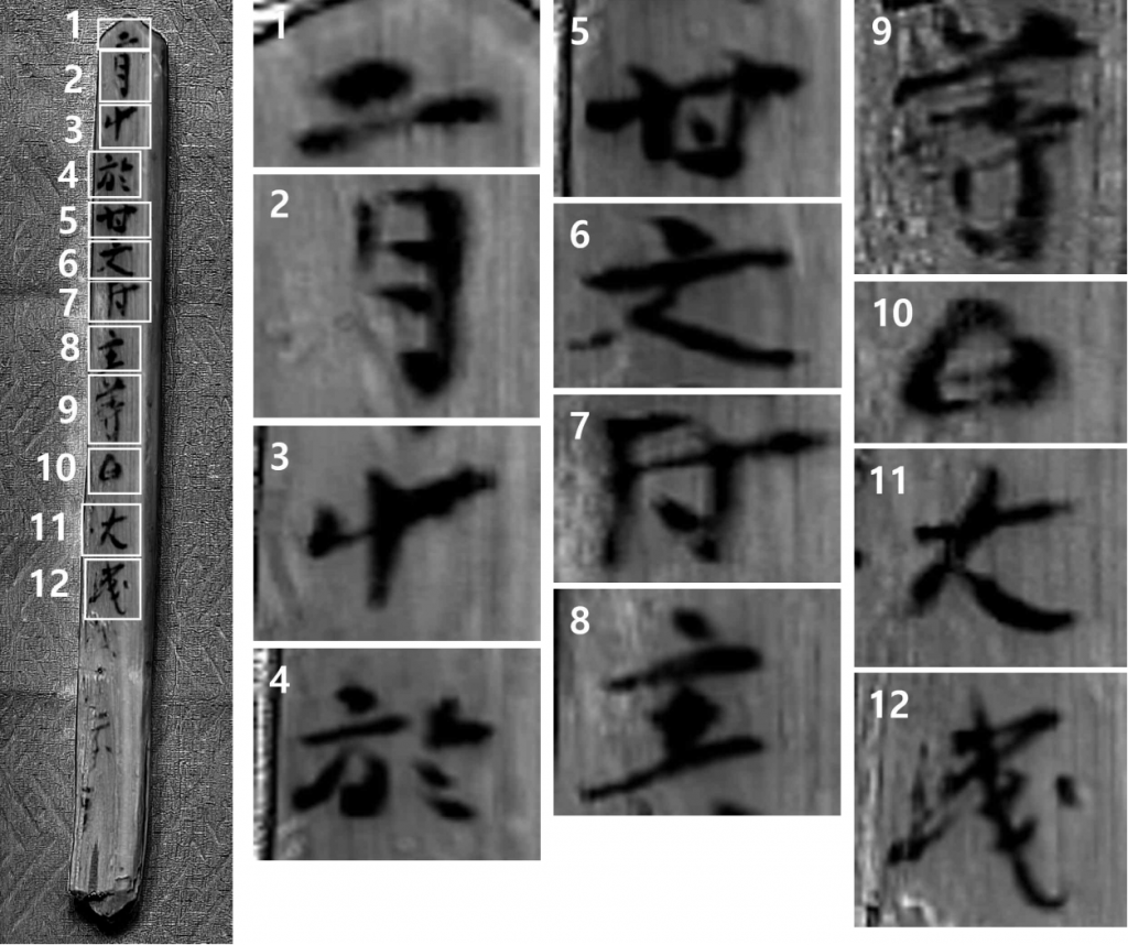 함안 성산산성에서 출토한 다면 목간 1면의 초분광 사진