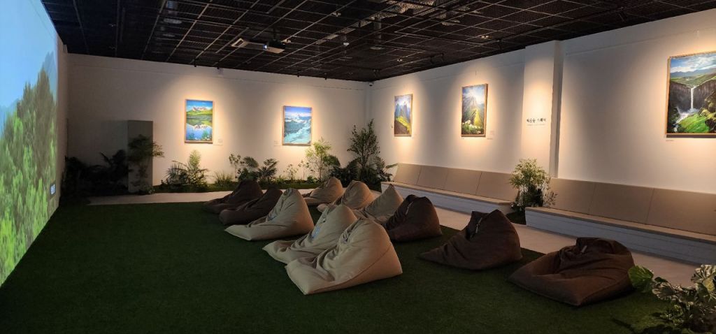 제3전시실은 푹신한 빈백(콩주머니) 소파에 몸을 파묻고 잔잔한 음악과 함께 스크린에 펼쳐지는 어치계곡의 구시폭포 등 백운산의 사계를 그린 미디어아트를 감상할 수 있다.