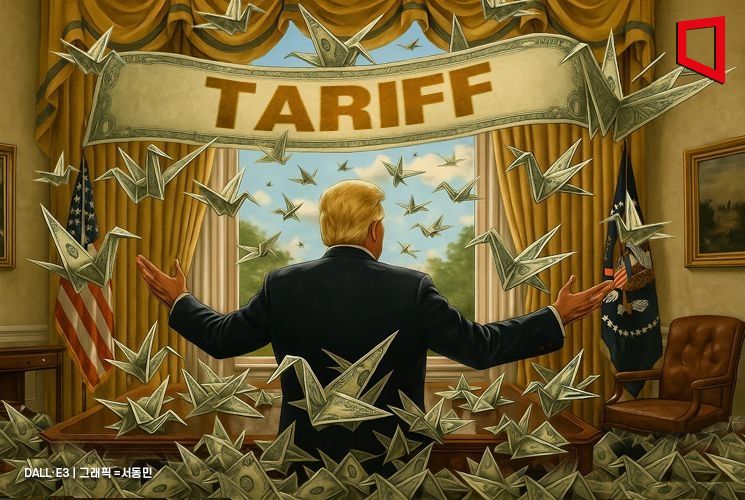 트럼프 대통령은 상호관세 발효 시점인 7일(현지시간) 오전 0시1분(한국시간 오후 1시1분)을 3분 앞두고 사회관계망서비스 트루스소셜에 "자정이 됐다! 수십억달러의 관세가 이제 미국으로 흘러들어오고 있다!"고 적었다.