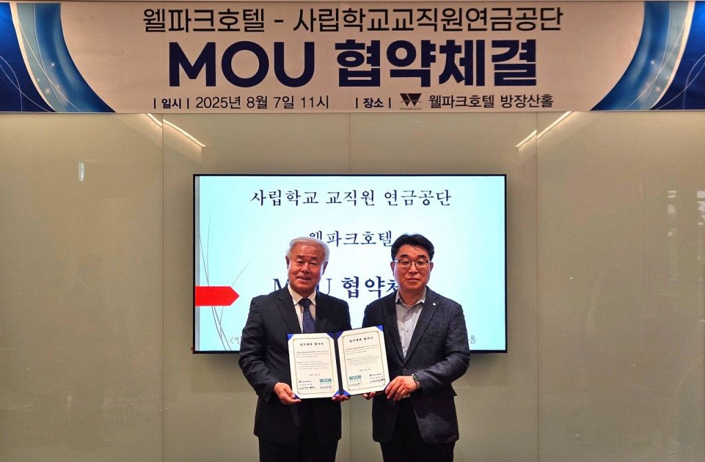 사립학교교직원연금공단(사학연금)은 사학연금 가입자의 복지 증진 및 여가·휴양 기회 확대를 위해 7일 웰파크호텔과 제휴복지 업무협약을 체결했다고 밝혔다.