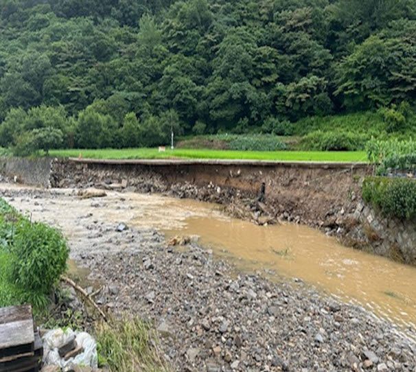 화순군 이서면 장복천 제방이 지난달 중순 집중호우로 붕괴되는 피해를 봤다. 화순군 제공